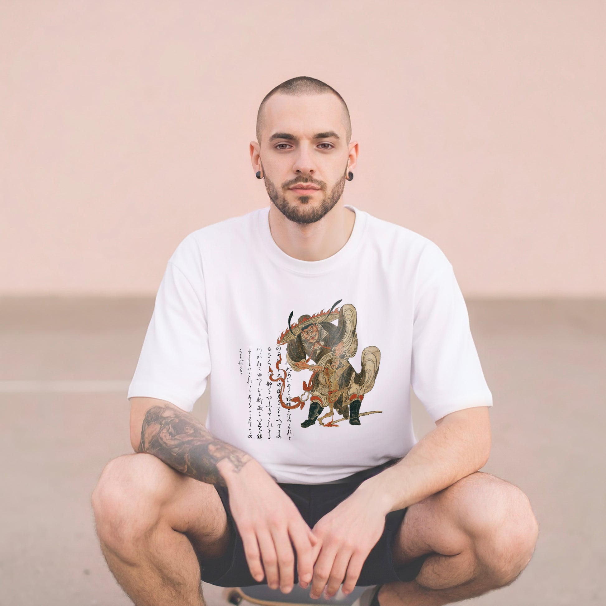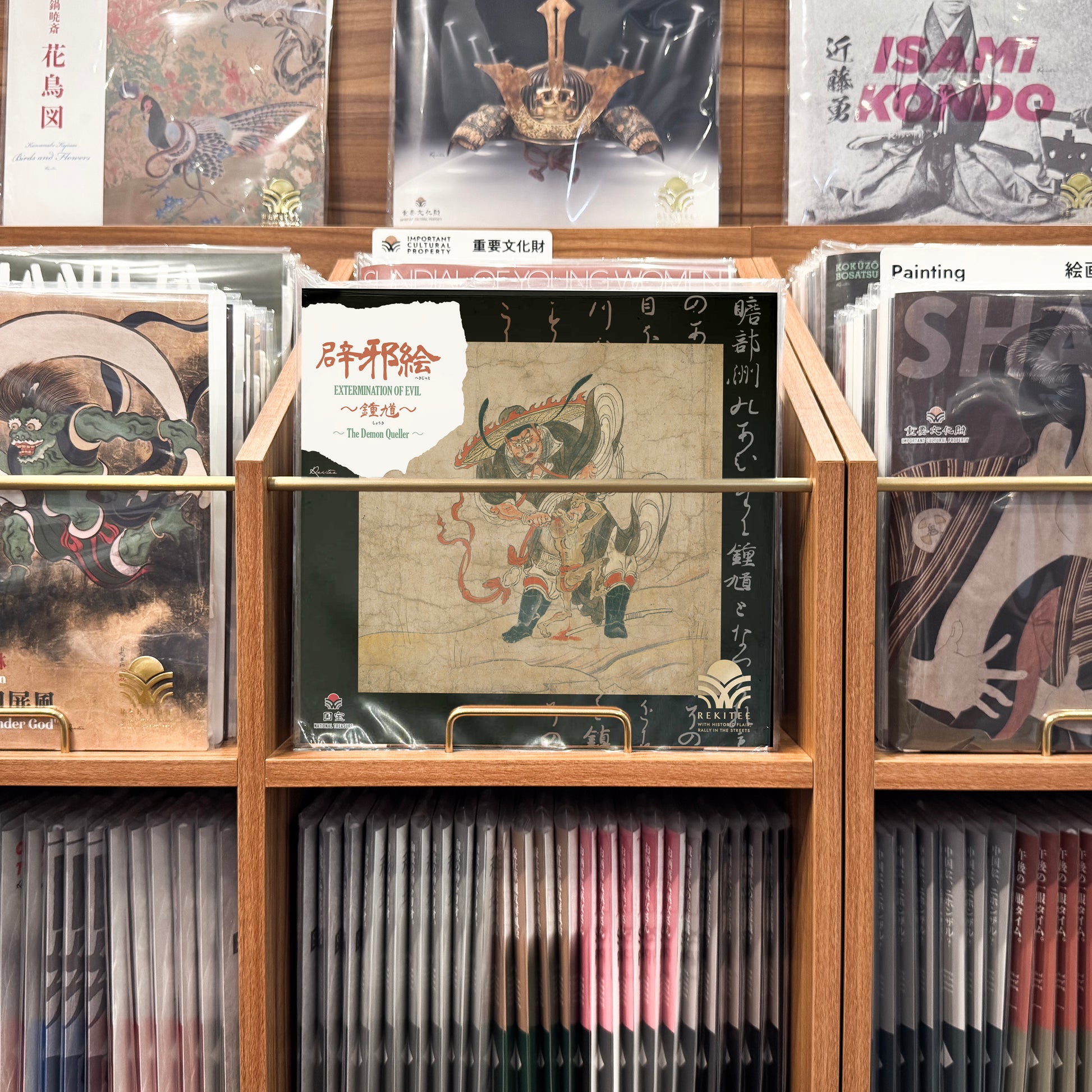 This artwork shows Shōki, who exterminates evil spirits that cause harm and illness. According to legend, he appeared in a dream of Emperor Xuanzong of the Tang Dynasty, destroyed a plague demon, and cured the emperor’s illness. In Japan, Shōki became a popular figure on Boys’ Day banners and samurai dolls. In this scene, he is shown pinning down a plague demon with his left hand and pulling out its eye with his right.