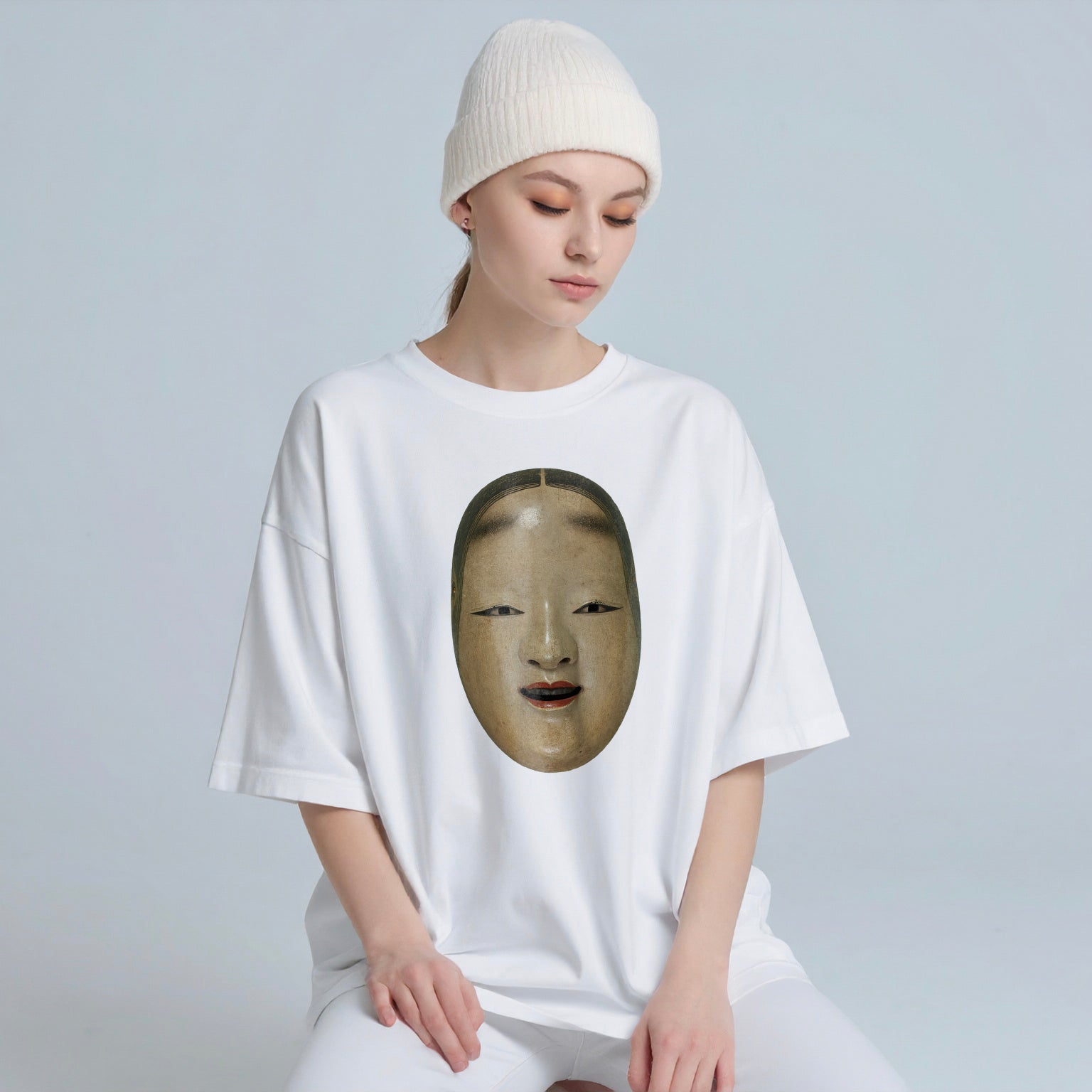 Ko-omote is a representative Noh mask used in Noh, a traditional performing art of Japan, to portray a young and innocent woman. Among female masks, it represents the youngest age group, characterized by both charm and youthful freshness. This particular piece vividly expresses these qualities through its plump contours and neatly arranged strands of hair.